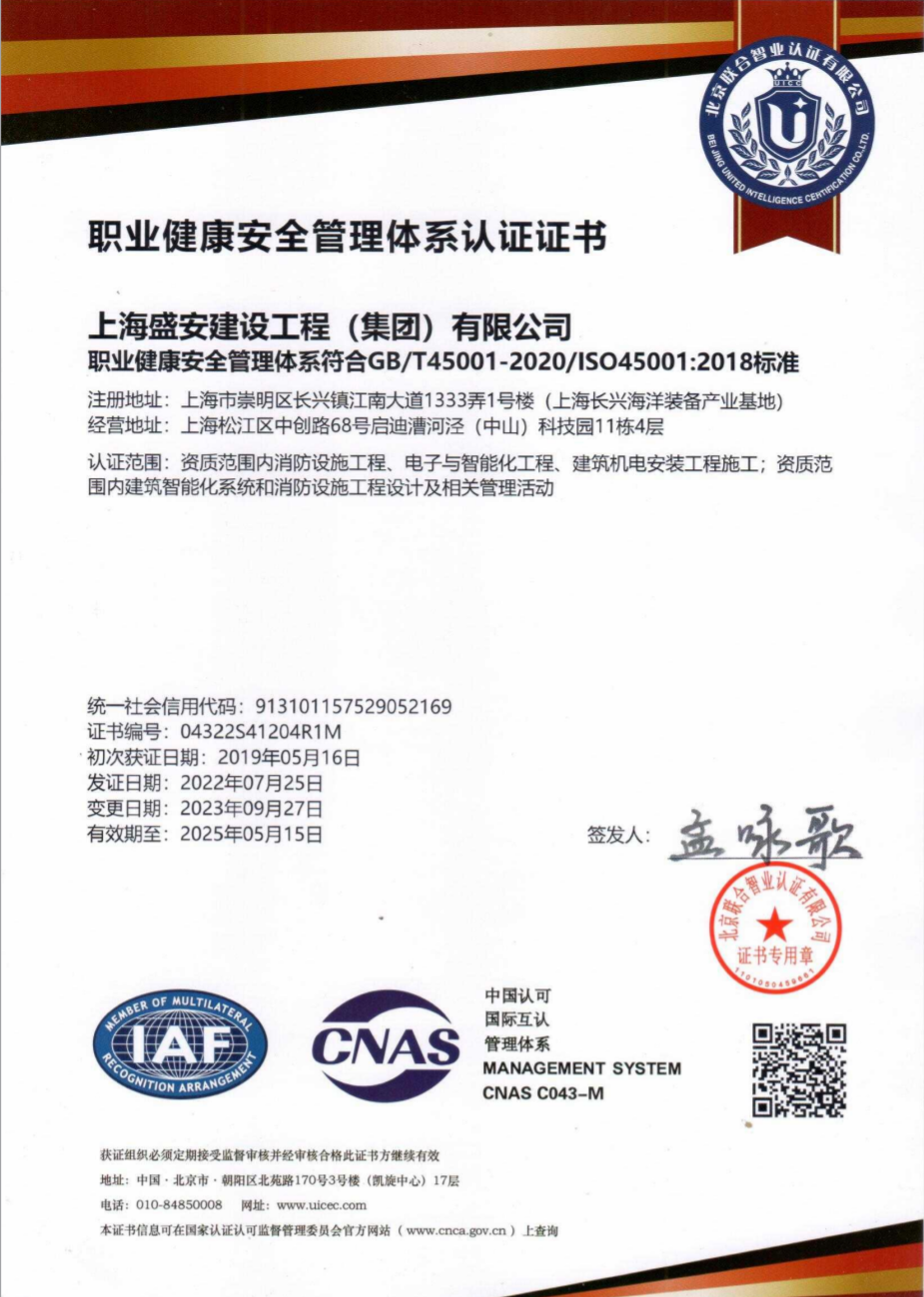 The company has acquired various qualification certificates which follow: Level II Certificate for general contracting of building engineering construction, Level II Certificate for general contracting of power engineering construction, Level II Certificate for general contracting of municipal utilities,Level III License for installation (repair, testing) of power facilities, Level II Certificate for general contracting of mechanical and electrical (E&M) engineering construction, Level I Certificate for specialized contracting of electronic and intelligence engineering, Level I Certificate for specialized contracting of fire protection facility engineering, Level II Certificate for specialized contracting of building decoration engineering, Level II Certificate for specialized contracting of mechanical and electrical installation engineering for building construction, Qualification for construction labor service enterprise with Ungraded (Filing) Certificate for labor subcontracting, Safety Production License for building construction, Grade B Specialized Design Certificate for intelligent building systems, Grade B Specialized Design Certificate for fire protection facility engineering, Level III Qualification Certificate for Shanghai public security engineering design and construction companies. The company has also passed the B/T19001-2016/ISO9001:2015 and GB/T50430-2017 quality management system standard certification, GB/T24001-2016/ISO14001:2015 environmental management system standard certification, GB/T45001:2020/ISO45001:2018 occupational health and safety management system standard certification. The “People-oriented” is the company’s fundamental concept of corporate governance and development. The company has a group of skilled professionals and an excellent management team. The company’s sponsors and main management have been engaged in fire protection, intelligentization, painting process equipment business for more than 30 years. The equipment (systems) involved in the company’s main business covers fire protection systems (fire alarm systems, flammable/toxic gas detection and alarm systems, as well as gas fire extinguishing systems, high-pressure water mist fire extinguishing systems, sprinkler fire extinguishing systems, foam fire extinguishing systems, dry powder fire extinguishing systems, steel structure fireproof coating systems and other systems); intelligentization systems (monitoring system engineering, security technology prevention systems, data centers/electronic computer room engineering and other related systems); coating process equipment (ostrich feather cleaning system, ion air purge system). The company’s certified personnel are composed of the following: 14 constructors, 19 engineers, 12 registered fire protection engineers, 53 building (construction) firemen and fire-fighting facility operators, 6 persons with safety officer certificates, 12 persons with electrician certificates, 20 persons with welder certificates, 3 persons with certificates for operation within toxic, harmful or limited space, with professional engineering and technical personnel and other employees with professional qualification certificates accounting for 80% of the staff. The company has been engaged in professional engineering system design, construction and installation business for a long time, and has formulated a practical engineering quality management system to provide customers with “24-hour safe and uninterrupted” services. The company has a labor service subsidiary-Shanghai Zanxiang Construction Labor Service Co., Ltd., which has over 200 long-term laborers throughout the year, providing comprehensive quality, safety and other practical guarantees for engineering projects. The company also has a professional sales subsidiary-Shanghai Lanyao Fire Equipment Co., Ltd., which acts as an agent of mainstream products in the industry, and provides users with the most cost-effective products, and after-sales service. Professional maintenance is a sufficient and necessary condition for a well-run, safe and stable fire protection system. Over the years, the company has undertaken a large number of building and plant fire protection system maintenance projects. After more than ten years of experience accumulation for professional maintenance projects, we have successfully developed the industry’s first “fire protection facility operation management information platform”. The platform realizes two-way real-time interaction, and enables users and companies to control the operation status of the entire fire protection system, thereby providing a fundamental guarantee for the user’s fire safety. As a professional fire protection company, our business also includes inspection for fire protection facilities of buildings, and fire protection safety assessment. In terms of general contracting for E & M engineering construction and specialized contracting for building E & M installation engineering, our company also does construction and installation business in the fields of water supply and drainage pipelines, power systems, ground source heat pump refrigerator and heating engineering, substation engineering, power distribution and lighting engineering, and waste gas treatment, etc. In terms of specialized contracting for electronic and intelligentization engineering, our business scope covers integrated wiring systems, access control systems, intrusion alarm systems, CCTV monitoring systems, ambient monitoring systems, park monitoring systems, building automatic control systems, etc. In addition to engineering business, the company has recently invested human resources and funds in the research and development and manufacturing of special fire protection products. "Make the centennial legacy prosperous and make all families live in peace and happiness" is our objective. With this objective, we will continue to provide the society with our professional services. --Ce